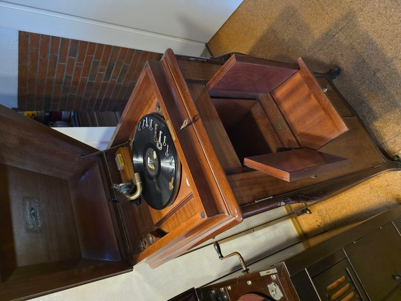 Luxus Modell, funktionsfähig, Metallteile Vergoldet, in gutem Originalzustand mit 3- Feder Laufwerk und Exhibition Schalldose.